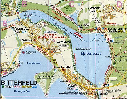 insbesondere Friedersdorf, Mühlbeck, Pouch, Muldenstein, Jessnitz und Bitterfeld-Wolfen.